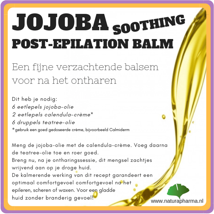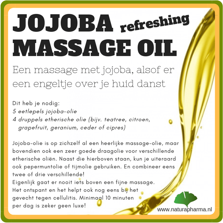 Naast een heerlijke massage-olie is jojoba ook een zeer fijne draagolie voor etherische olie, zoals teatree, citroen, grapefruit, geranium, ceder of cipres.