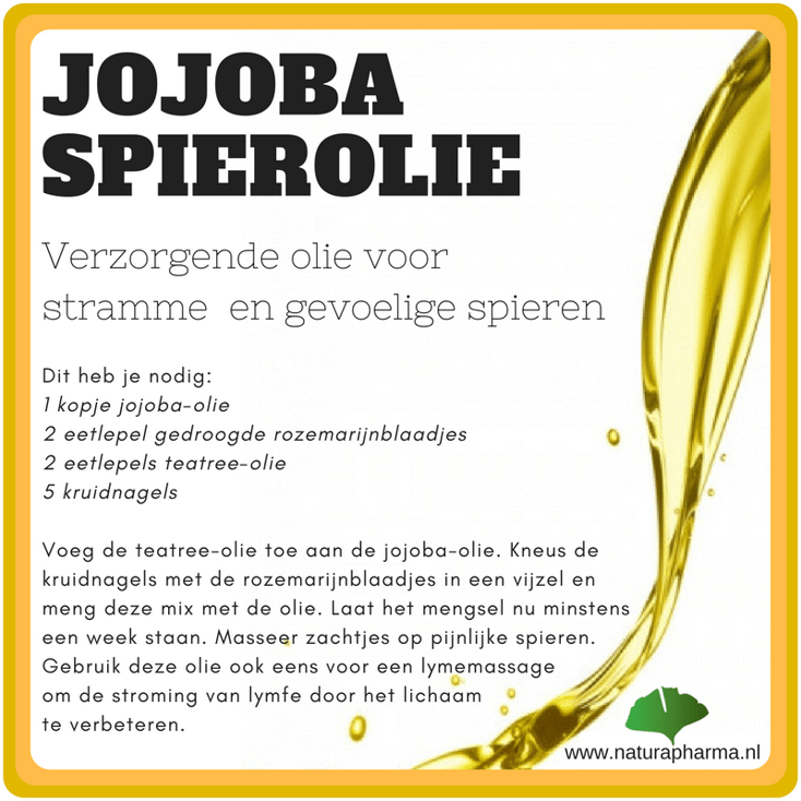 Stramme en gevoelige spieren verzorg je met rozemarijn, kruidnagels, teatree-olie, en natuurlijk jojoba-olie!