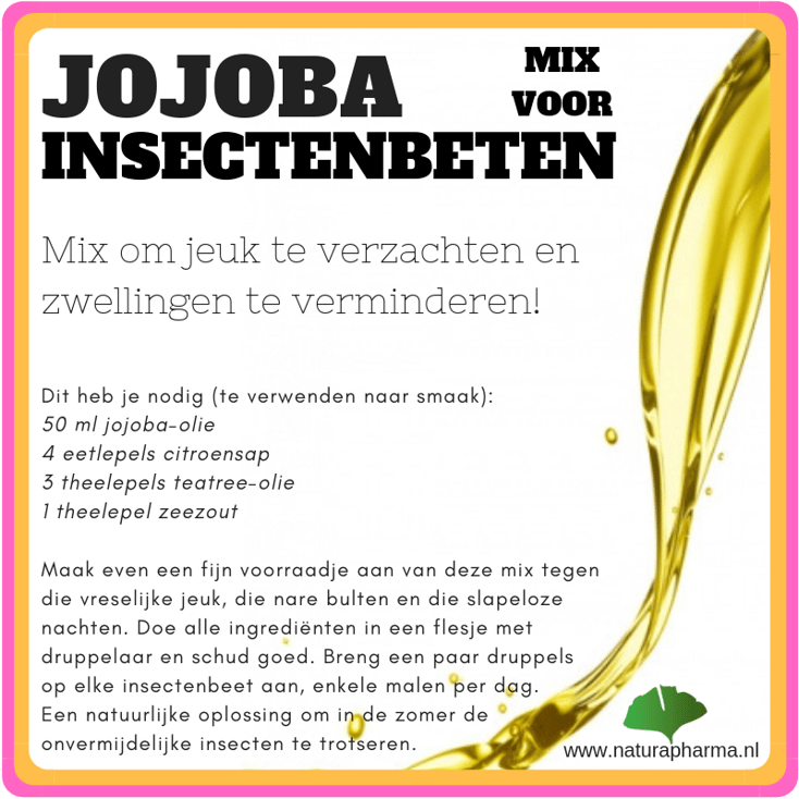 Maak ook deze natuurlijke jojoba-mix tegen die mix tegen die vreselijke jeuk, die nare bulten en die slapeloze nachten.