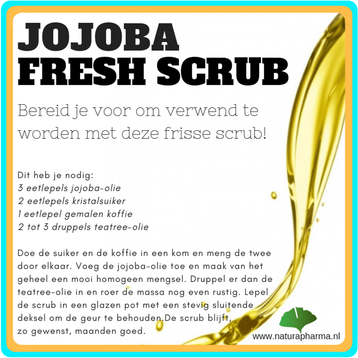 Laat je verwennen met deze frisse scrub door o.a. suiker, koffie, teatree-olie en natuurlijk jojoba-olie!