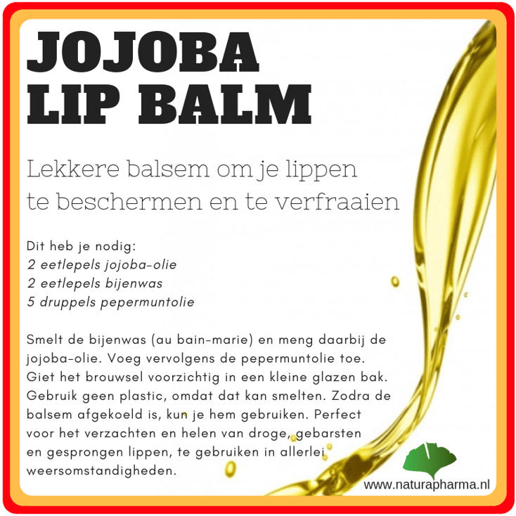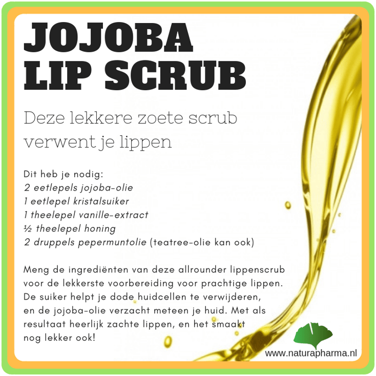 Hieronder staan verschillende heerlijke doe-het-zelf-recepten met jojoba-olie voor de bereiding van je eigen creams en scrubs en andere cosmetica voor de verzorging van je lichaam, gezicht, haar, nagels, lippen en nog meer zelfs. Veel plezier met het uitproberen!