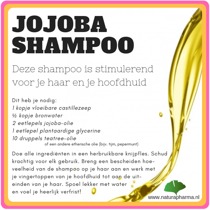 Deze heerlijke shampoo maak je met onder andere castillezeep, bronwater, teatree-olie en jojoba-olie!