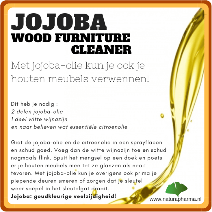 Met jojoba-olie kun je je houten meubels verwennen, maar ook prima je piepende deuren smeren of zorgen dat je sleutel weer soepel in het sleutelgat draait!