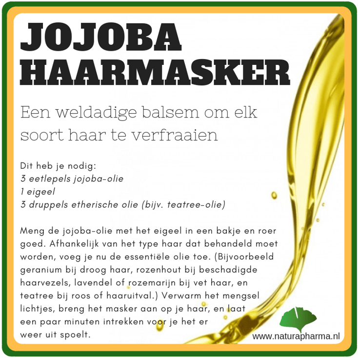 Dit weldadige haarmasker bevat etherische olie (teatree-olie), eigeel en jojoba-olie!