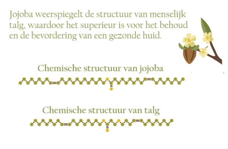 Een fascinerend aspect van jojoba is de structurele gelijkenis met menselijk talg.