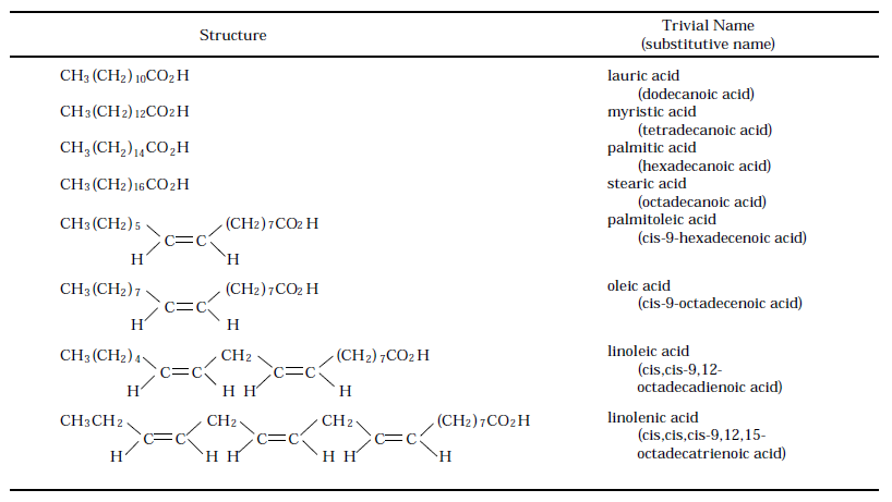 uit lange ketens van vetzuren en vetalcoholen. Hun lineaire structuur met geïsoleerde dubbele bindingen maakt ze aanzienlijk minder reactief dan de dubbele bindingen in triglyceriden. Deze