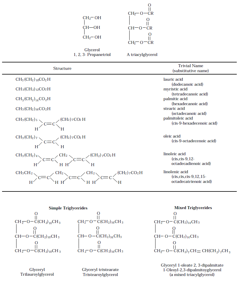 Triglyceride oliën (zoals olijfolie, amandel-olie, zonnebloemolie) bestaan uit glycerol gebonden aan verschillende vetzuren. Deze